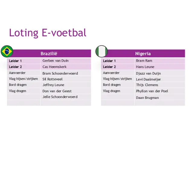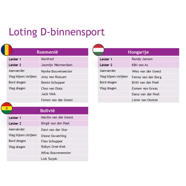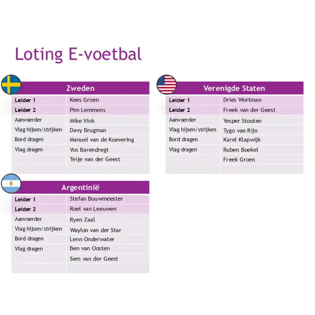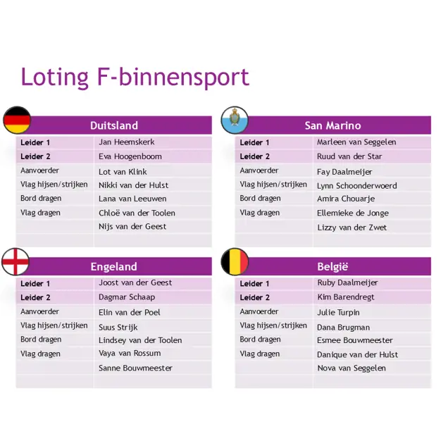 De teamindeling is zaterdag 1 maart bekend gemaakt.