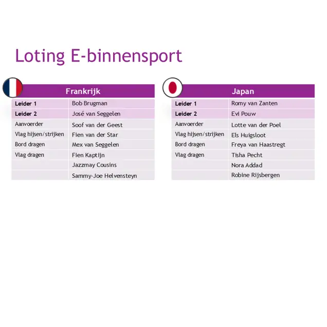 De teamindeling is zaterdag 1 maart bekend gemaakt.