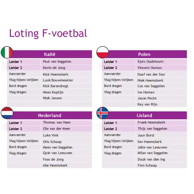 Team indeling F-jeugd