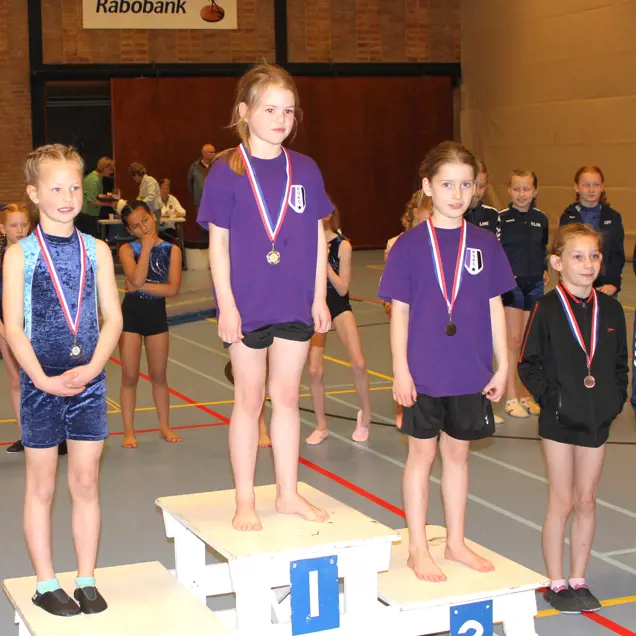 Maar liefst 6 van de 11 ROAC-deelnemers zijn gisteren in de prijzen gevallen bij de Kaag & Braassem Gym Cup. Dat is een hele goede score. Trainster Caroline heeft met de kinderen een mooie prestatie geleverd, ondanks de rugproblemen waar ze de laatste tijd mee te kampen heeft. Het was goed dat ze vroeg in het seizoen waren begonnen met het oefenen voor de wedstrijd.