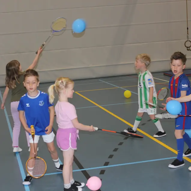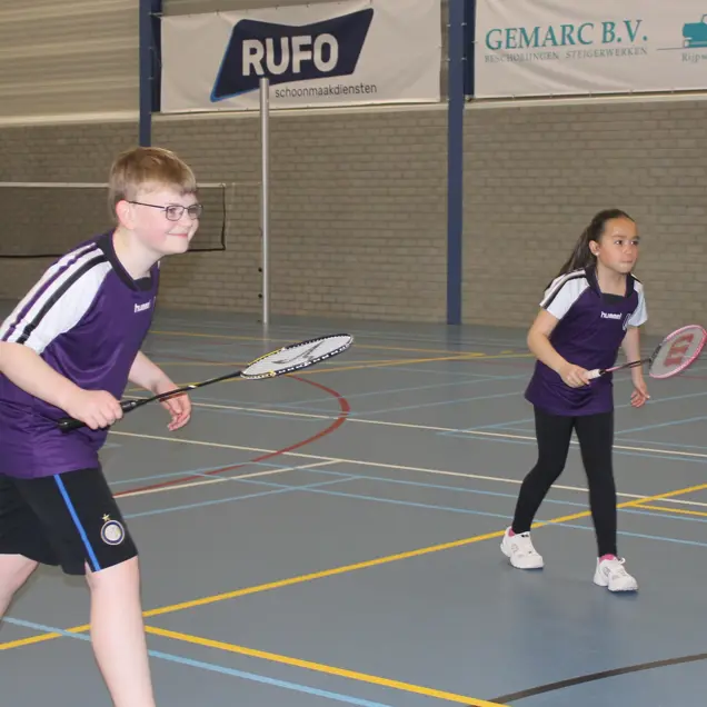 In het tweede deel van de sporthal zijn het de badminton jeugdteams die een competitiewedstrijd gaan spelen.